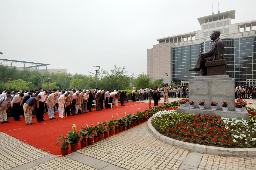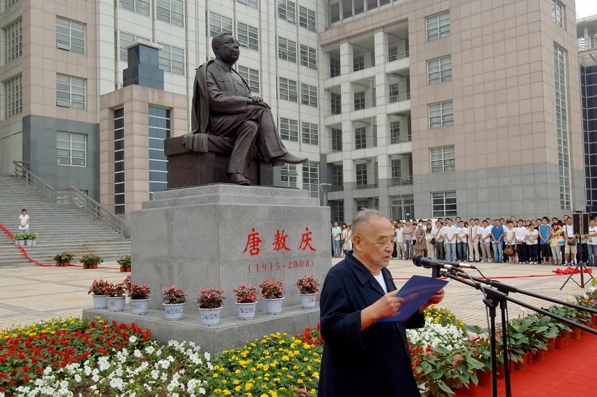在仪式上,校党委书记陈德文和校长展涛共同为唐敖庆楼揭幕。徐光宪院士、姚建年院士、唐敏女士、展涛校长共同为唐敖庆院士塑像揭幕。参加仪式的全体同志向唐敖庆塑像三鞠躬致敬。唐敖庆院士的学生孙家钟院士介绍了唐敖庆院士的生平。